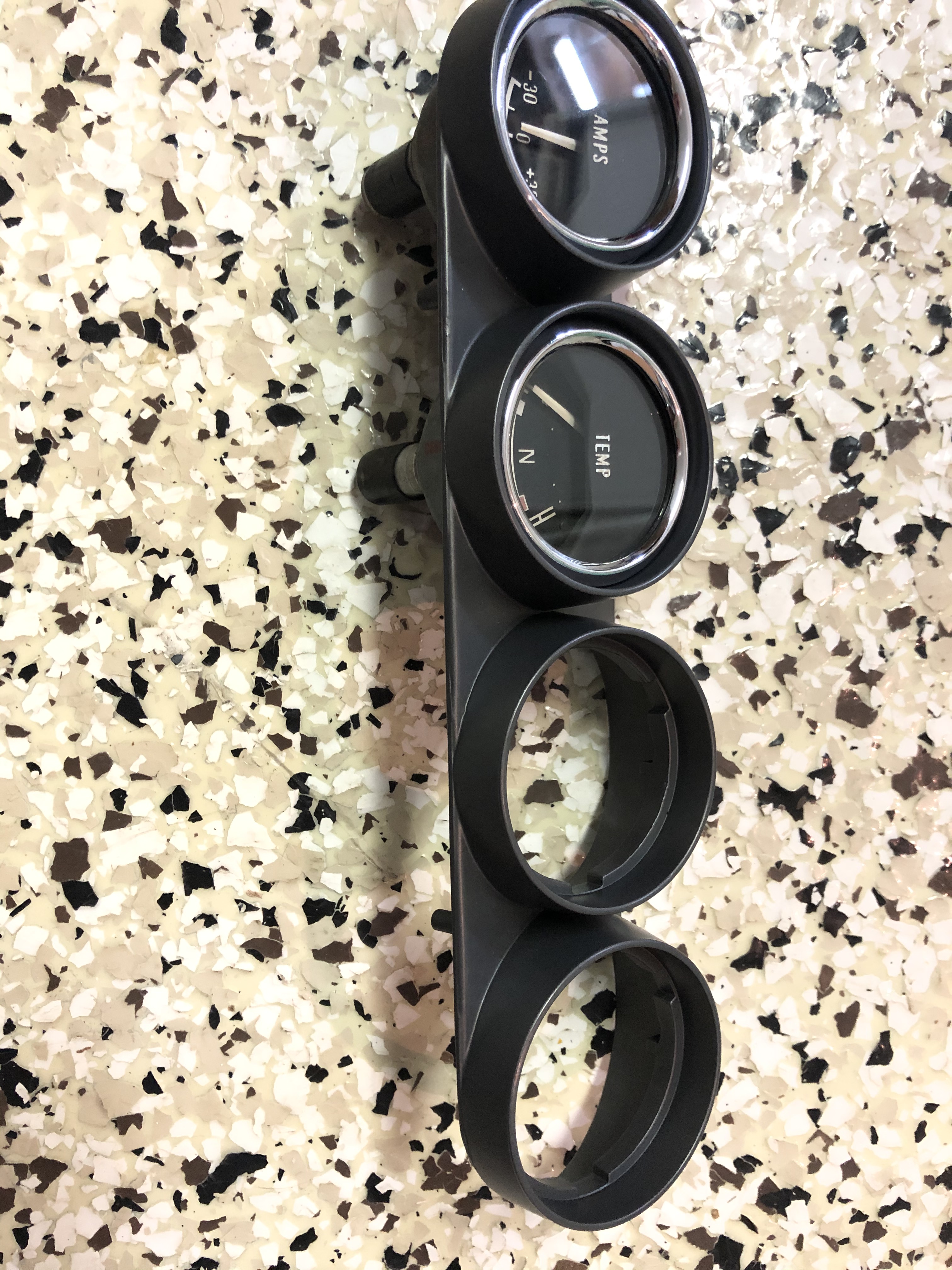 Refurbished gauges fitted into the freshly painted surround.